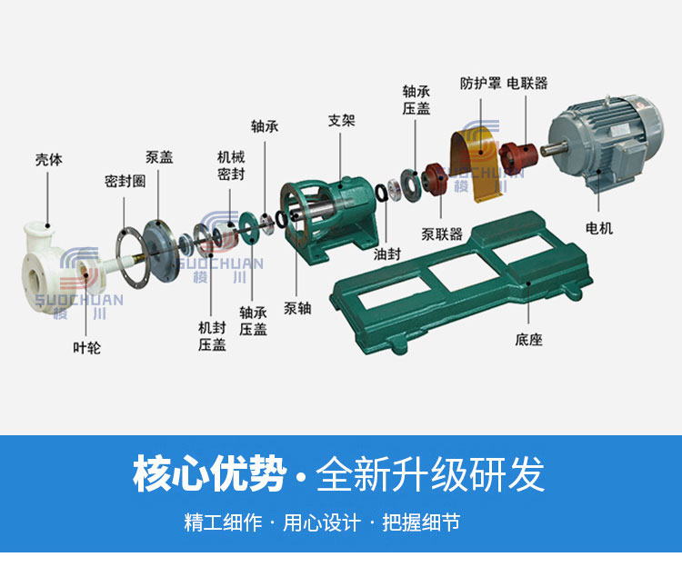 FSB和FSB(D)型離心泵,過流部件全部采用氟塑料合金制造,結構緊湊、操作簡單、價格低廉。兩種型號的泵殼、葉輪、機封等均可互換使用,深受農藥、電子、造紙等行業的歡迎。